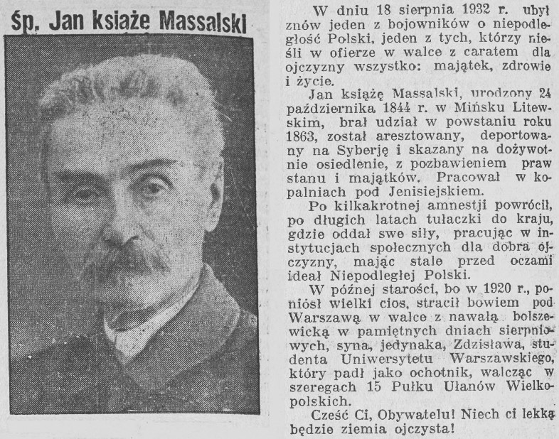 | 1863-1864 | Massalski, Jan | 23 października 1844 | 19 sierpnia 1932 | 21 sierpnia 1932 | Istnieje: CG-V-269 |