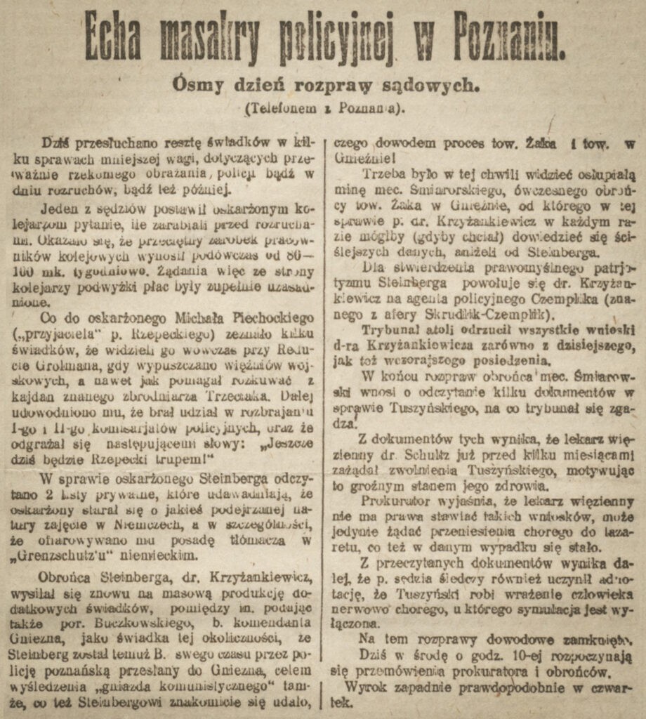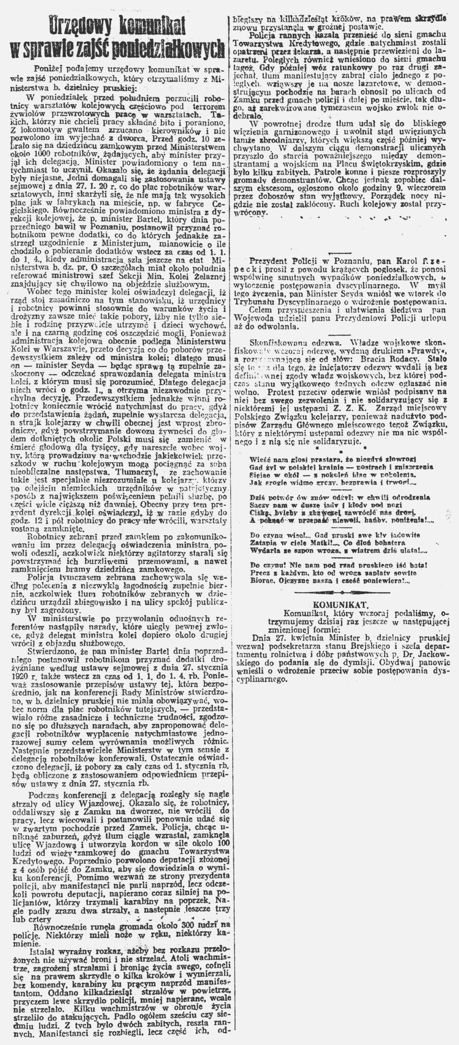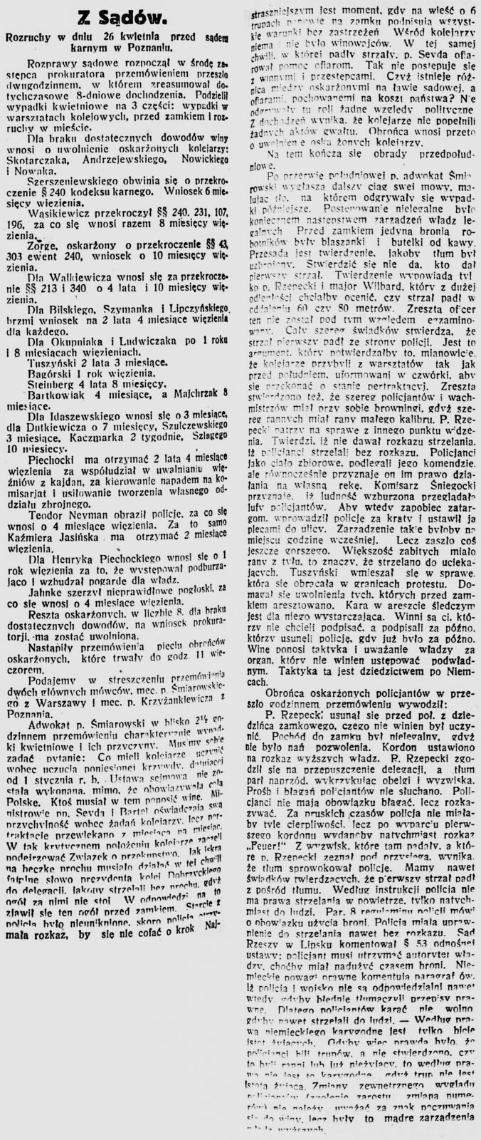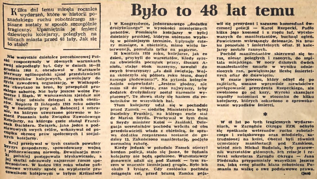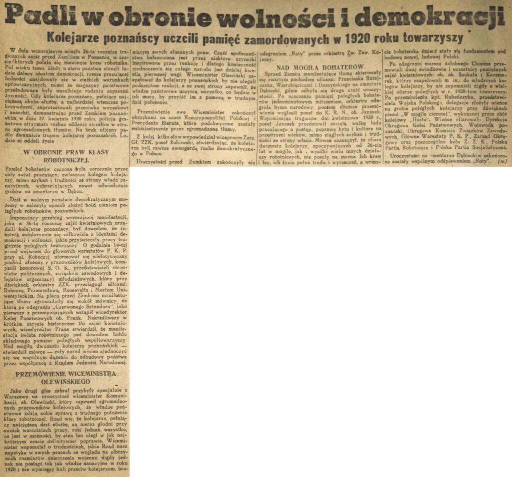 - Kaiser W., Masakra strajkujących kolejarzy w Poznaniu; poznan.naszemiasto.pl z dnia 26.04.2013 r.