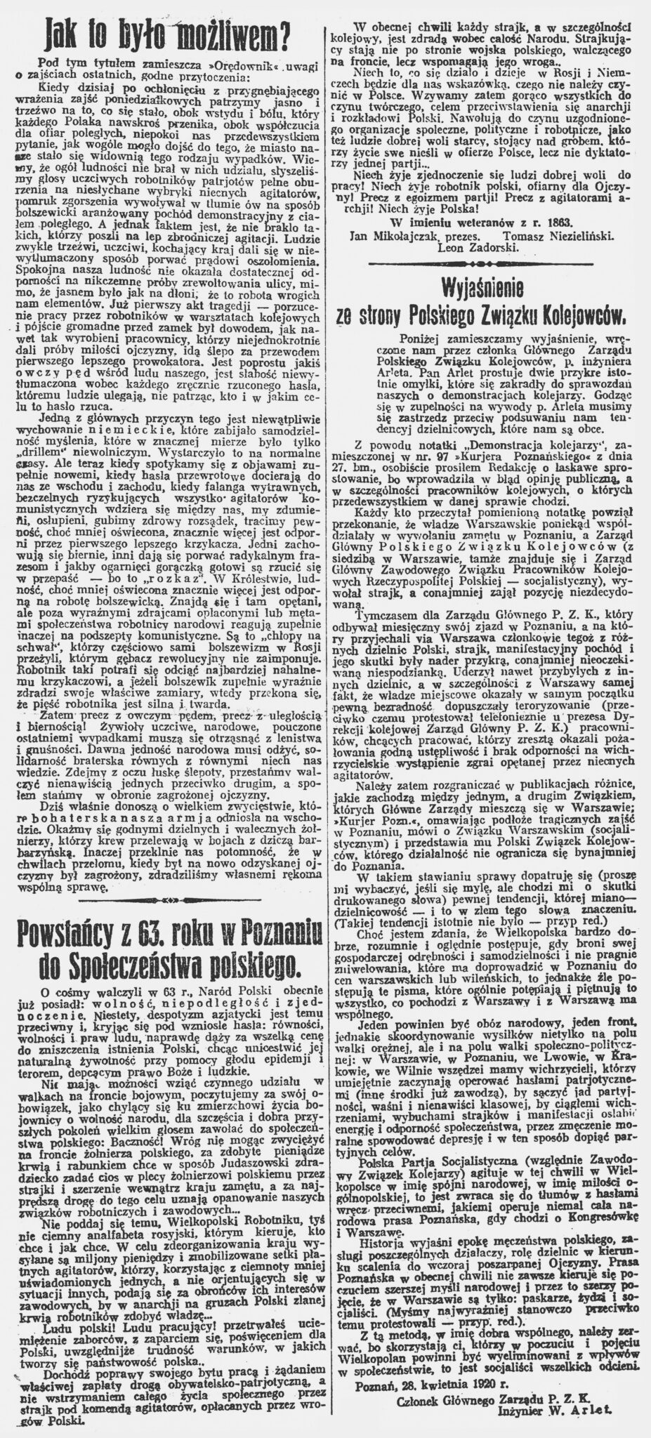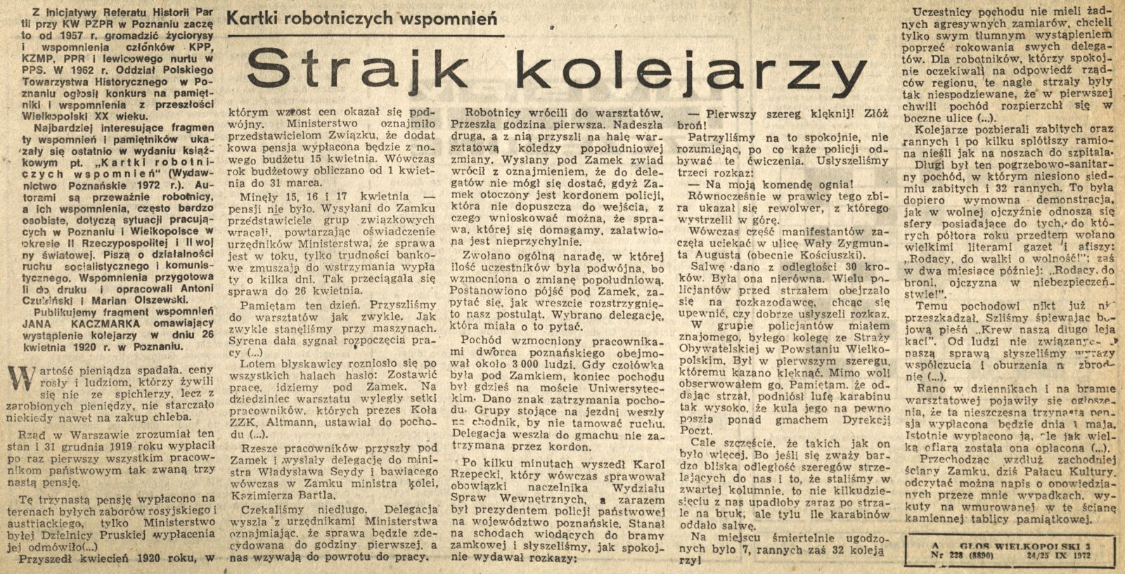 - Wspomnienia Jana Kaczmarka, uczestnika wystąpień kolejarzy w Poznaniu w dniu 26 kwietnia 1920 roku via www.rozbrat.org.