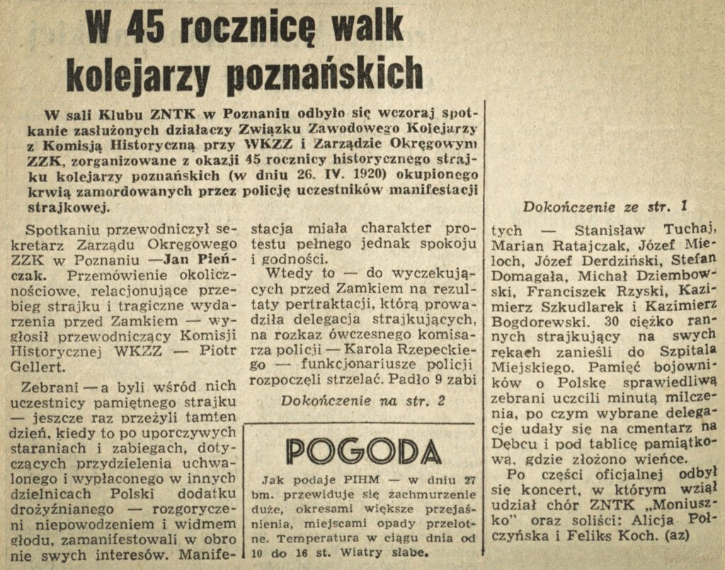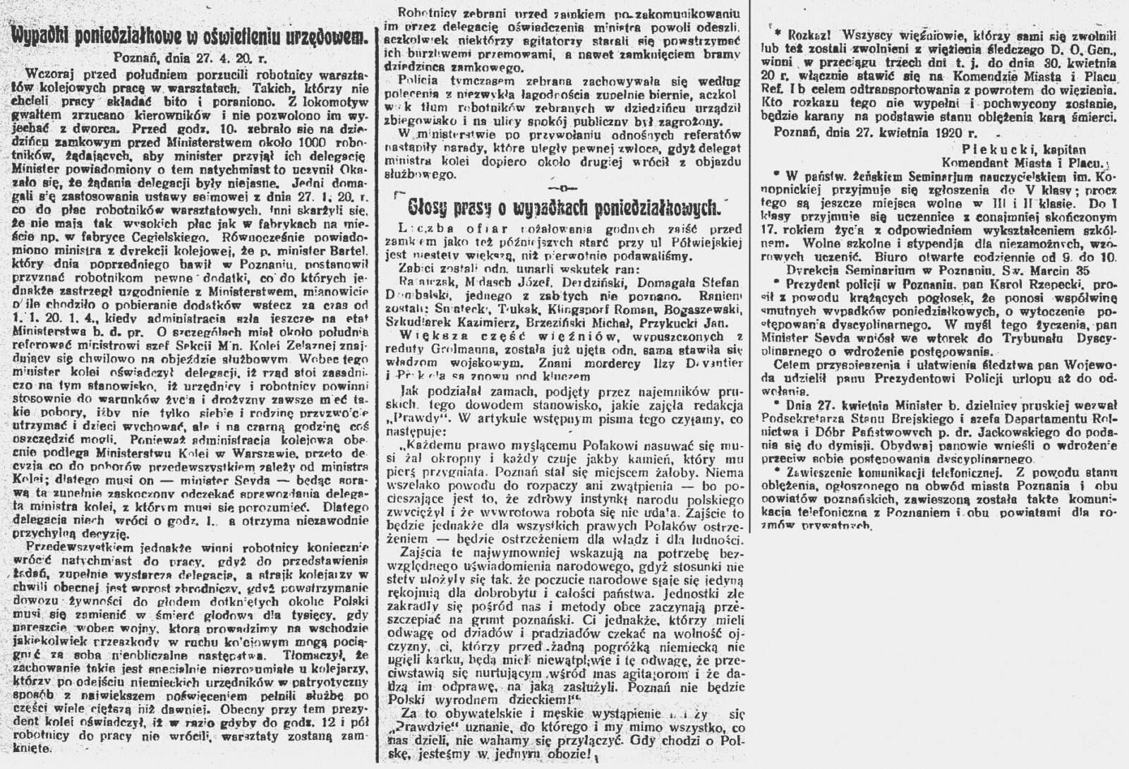 - Moszyński M., Poznański kwiecień 1920 roku. Strajk kolejarzy; trakt.poznan.pl.