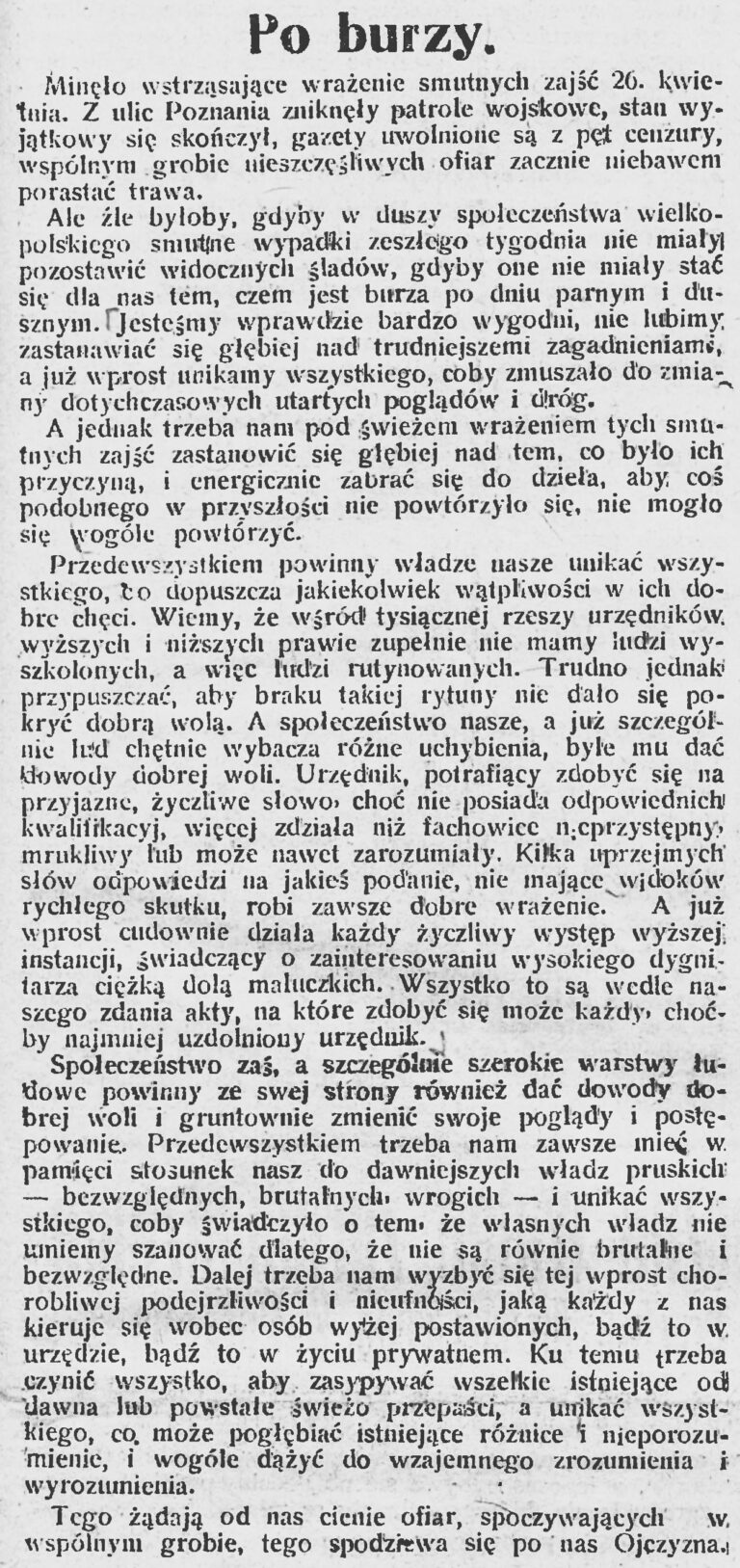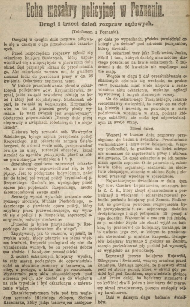 Po ponad stu latach społeczna oraz instytucjonalna pamięć o tych wydarzeniach zatarła się; ustąpiła pierwszeństwa wspomnieniu robotników Poznańskiego Czerwca 1956 r. Ci jednak nie wzięli się znikąd…