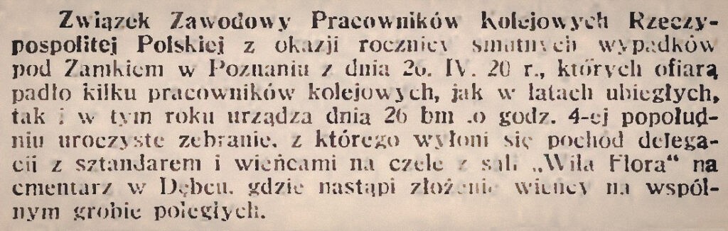 - Butlewski J., Poznańscy działacze lewicowi uczcili 102. rocznicę demonstracji robotników kolejowych; radiopoznan.fm z dnia 26.04.2022 r.