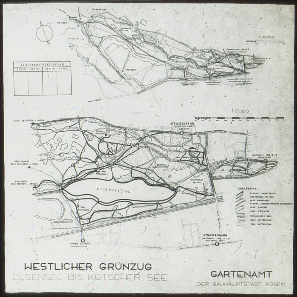 Plany przekształcenia i zagospodarowania obszarów zieleni publicznej Poznania pojawiały się już na przełomie XIX i XX w., w propozycjach m.in. Josepha Stübbena, odpowiedzialnego za nowy układ urbanistyczny Dzielnicy Cesarskiej oraz kolonii willowej na Sołaczu. W latach 30. XX w. uznany architekt Władysław Czarnecki, wspierany przez znakomitego przyrodnika, prof. Adama Wodziczkę oraz prezydenta miasta, Cyryla Ratajskiego, rozwinął te koncepcje, proponując utworzenie pierścieniowo-klinowego systemu zieleni publicznej. Parki poznańskiego śródmieścia zyskać miały połączenie szlakami komunikacyjnymi z podmiejskimi obszarami leśnymi. Wówczas po raz pierwszy przedstawiono ideę utworzenia Golęcińskiego Parku Ludowego*(1).