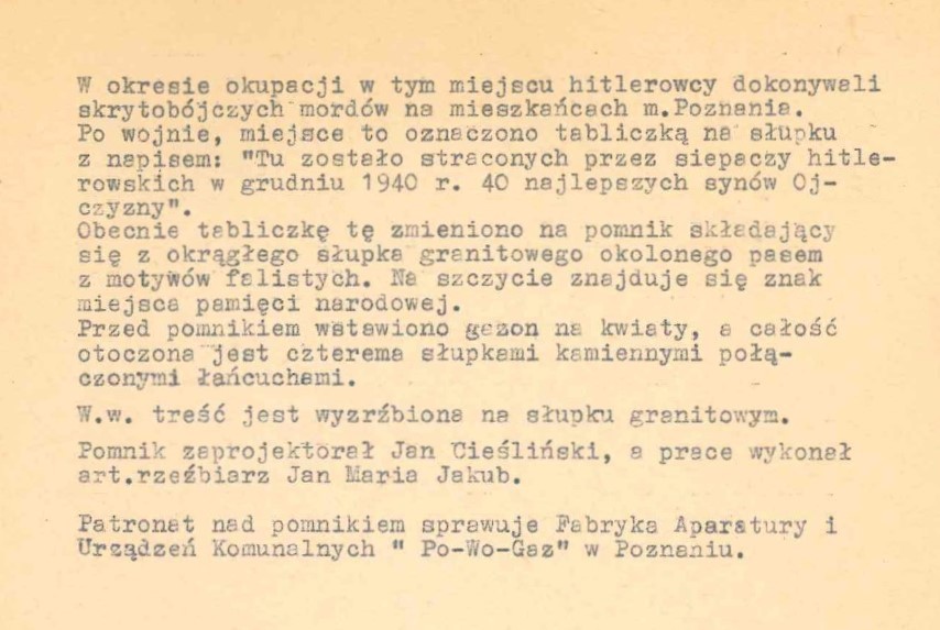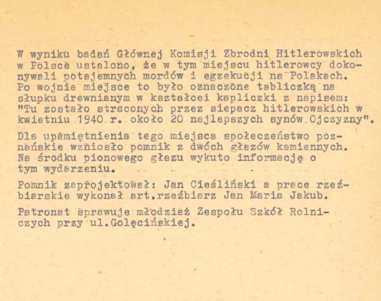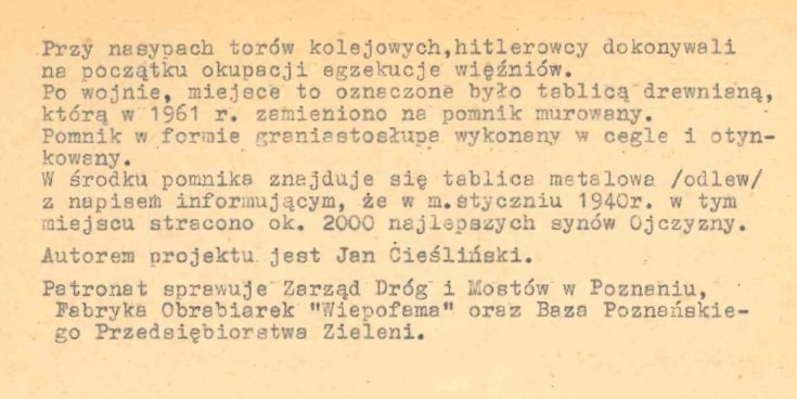 *(1) Por. Park rozrywki w pobliżu miejsca straceń, czyli spór o upamiętnienie; gloswielkopolski.pl z dnia 19.08.2019 r.
