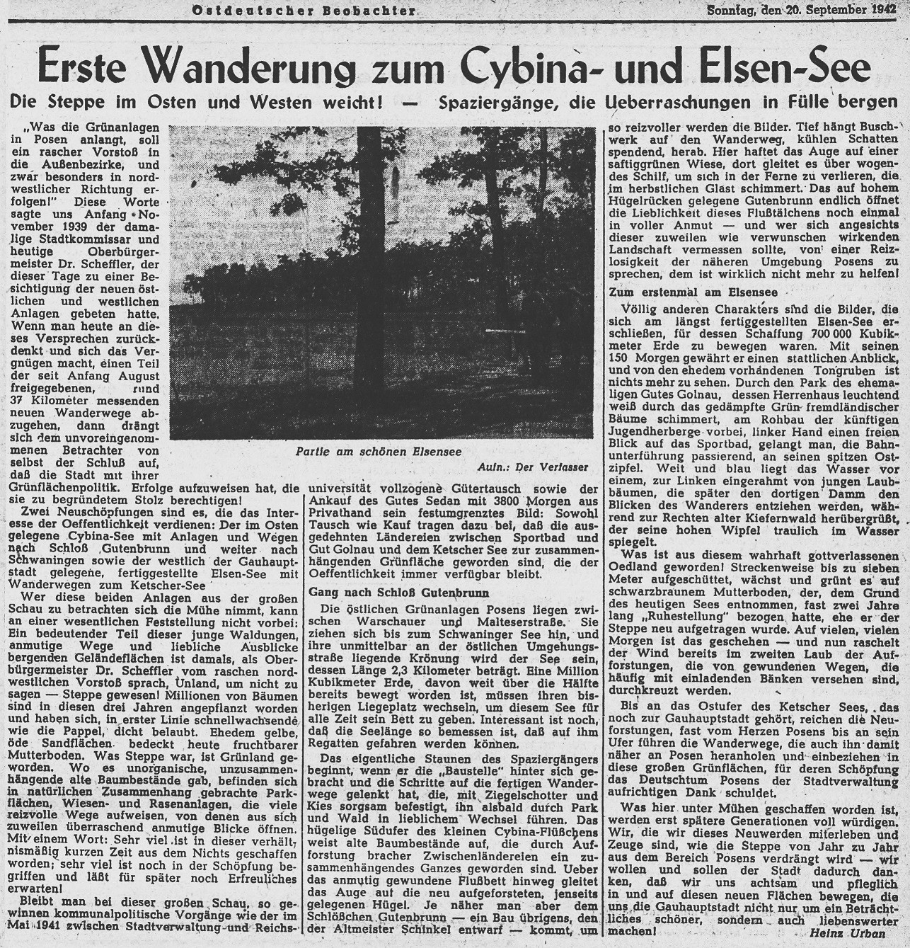 Wraz z początkiem niemieckiej okupacji – już w listopadzie 1939 roku! – nazistowscy planiści zainaugurowali prace nad koncepcją budowy sztucznego zbiornika wodnego w zachodniej części Poznania. Ten – jako element Golęcińskiego Parku Ludowego (niem. Golnauer Volkspark) – powstać miał poprzez spiętrzenie strumienia Bogdanka i zalanie jego wodami projektowanej niecki o długości ok. 1500 m i szerokości od 200 do 400 m…