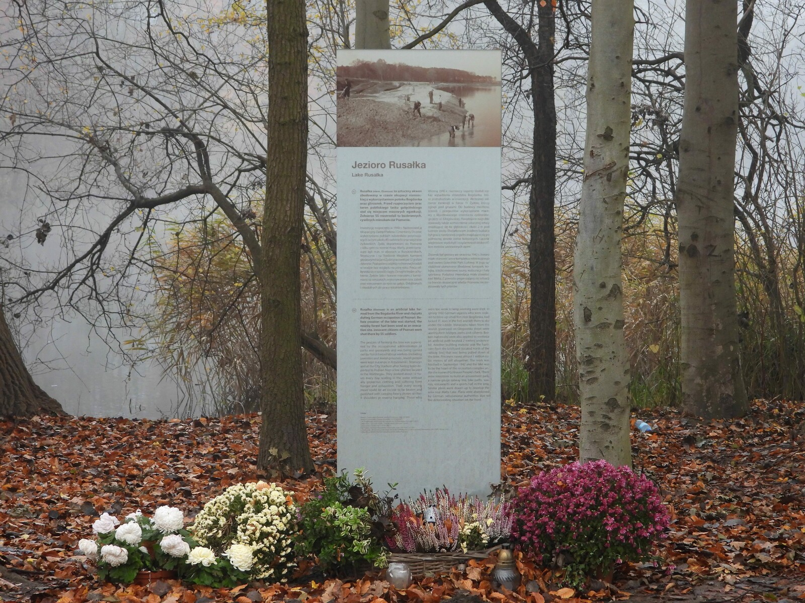 Na temat późniejszego okresu, tj. tragicznej historii budowy jeziora, długo milczano. Los polskich robotników przymusowych, a nade wszystko żydowskich więźniów, z premedytacją zmuszanych do katorżniczej pracy, niekiedy kończącej się śmiercią z wycieńczenia lub egzekucją, nie wybrzmiewał dostatecznie głośno. Wobec tego ewidentnego zaniedbania, być może celowego (czyżby były to próby swoistego cenzurowania przestrzeni, lansowanej jako obszar dedykowany odpoczynkowi i aktywnej rekreacji?), mieszkańcy Poznania sami próbowali zaaranżować tzw. społeczne miejsca pamięci. Niestety, bez eksperckiej, merytorycznej pomocy doszło nad Rusałką do sytuacji nieledwie kuriozalnych! „Mauzoleum” w „miejscu straceń” na zachodnim brzegu urządzono wykorzystując relikty powojennej sceny dla orkiestr wojskowych*(4). Na wschodnim brzegu jeziora, element infrastruktury hydrotechnicznej uznano za „zborową mogiłę jeńców”*(5)…