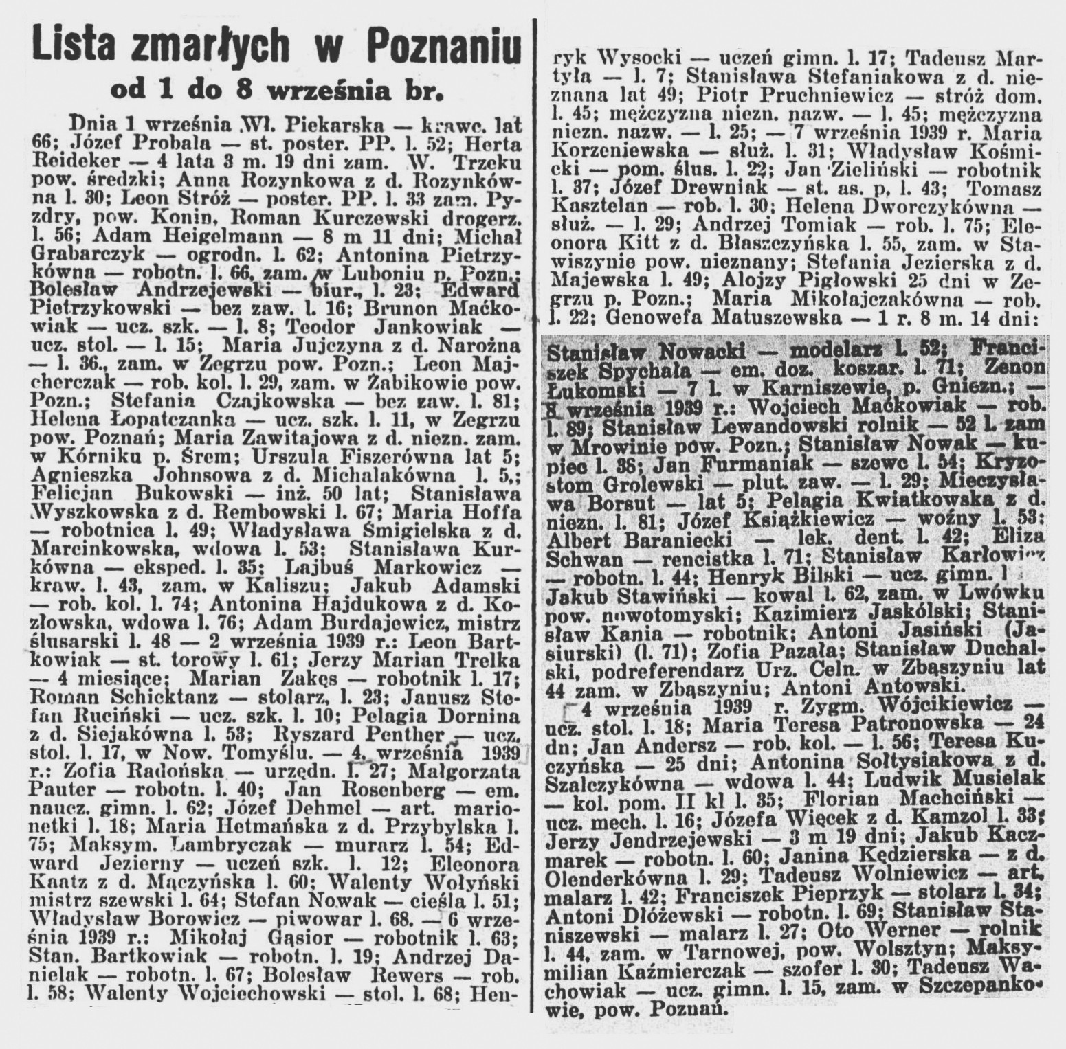 • Lista zmarłych w Poznaniu od 1 do 8 września br., [w:] „Dziennik Poznański”, 09.09.1939, nr 207, s. 2. Dalej jako: DP_1939.